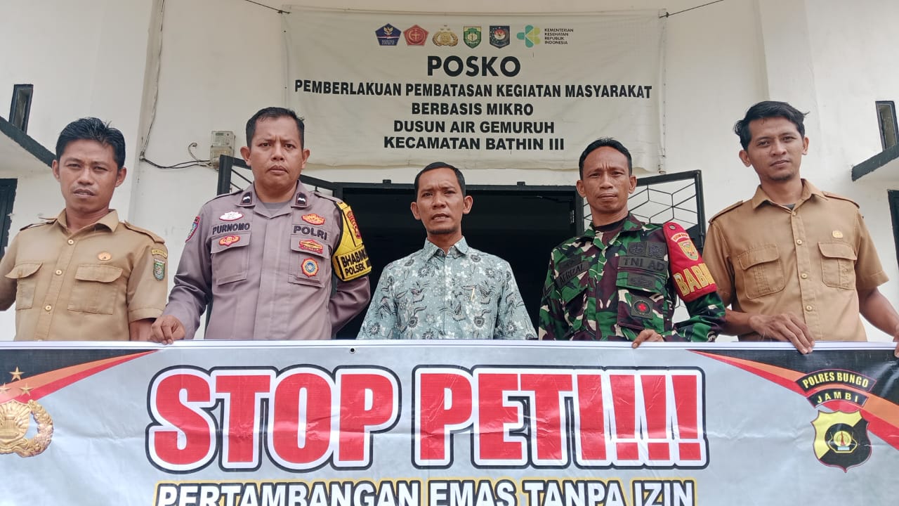 Datuk Rio Sahrul Pahmi menyampaikan Kami dari pemerintah Dusun Air Gemuruh pemerintah bersama Babinsa ,Babinkantibmas ,telah melakukan penyisiran dialiran sungai Batang Tebo berbagai upaya memberikan Himbauan pencegahan Stop PETI, antara lain mengeluarkan instruksi Dari Kapolres Bungo, Dandim 0416/Bute,Bupati Bungo tentang pencegahan dan penertiban PETI Stop PETI