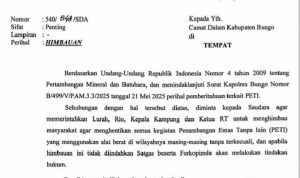 Dalam himbauan bernomor 540/548/SDA yang bersifat Penting, Bupati meminta agar camat memerintahkan Datuk Rio Datin Rio,Lurah,kepala kampung, ketua RW,RT untuk mengedukasi serta mengingatkan masyarakat agar menghentikan segala bentuk kegiatan penambangan emas tanpa izin (PETI).