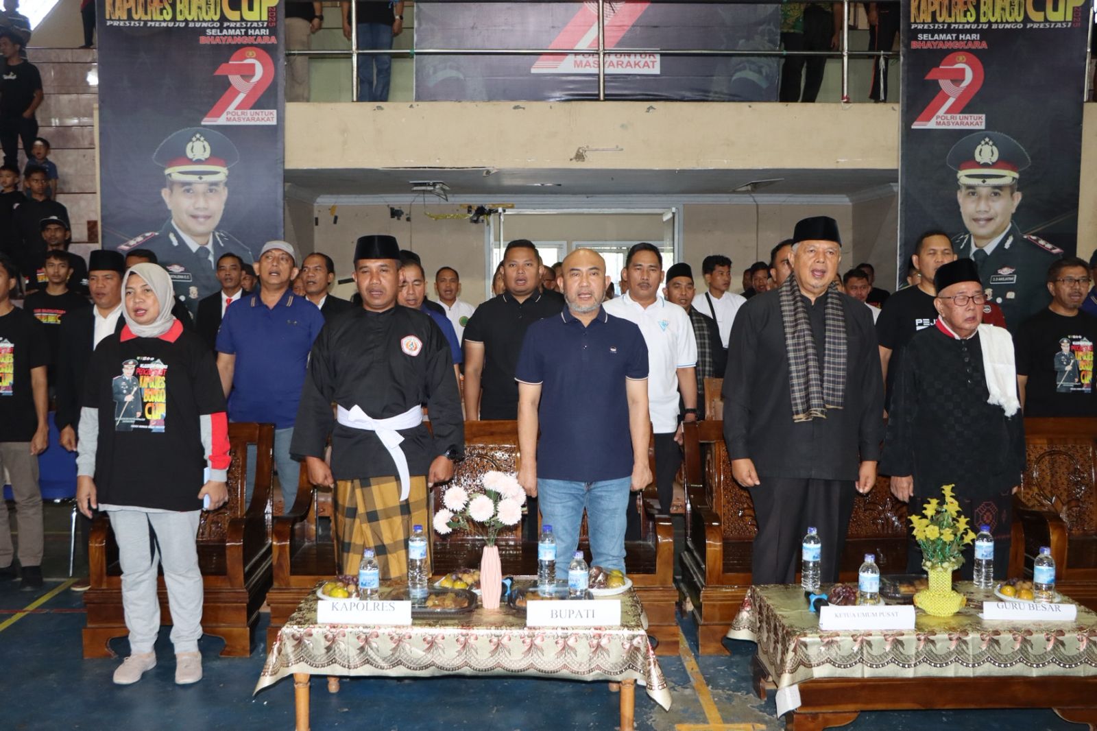 Tampak hadir saat pembukaan kejuaraan pencak silat Kapolres Cup, Bupati Bungo H.Dedy Putra, SH., M.Kn., Bapak H.Zul Elfian Umar, SH., M.Si selaku ketua pengurus pusat perguruan silat sisinga berantai al hikmah dan guru besar pendiri perguruan sisinga berantai al hikmah Zulhemi, BME serta Para Pejabat Utama Polres Bungo, Para Peserta Atlit Pencak Silat dan Tamu Undangan lainnya.
