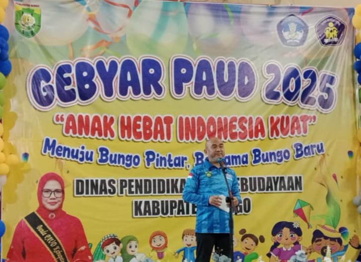 Dalam sambutannya, Bupati Bungo H. Dedy Putra menyampaikan apresiasi kepada seluruh pihak yang telah berkontribusi dalam pelaksanaan Gebyar PAUD 2025.