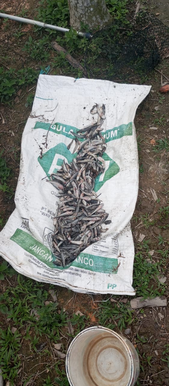 Pengelola kolam budidaya menyebutkan, tercemarnya air mengakibatkan kematian ikan hingga mencapai sekitar 10.000 ekor, sehingga menimbulkan kerugian besar bagi Bumdusun Mengkuang Jaya dan masyarakat sekitar.