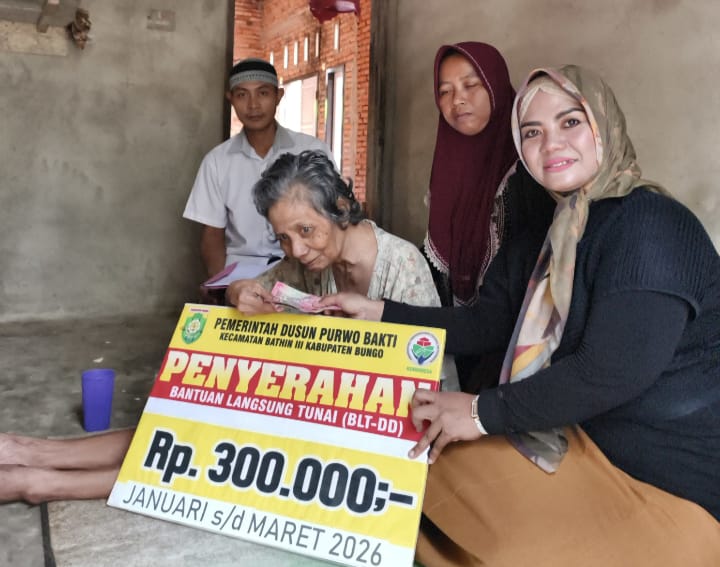 Jambipancuranpostcom.Bungo – Menjelang Hari Raya Idulfitri 2026, Pemerintah Dusun Purwo Bakti, Kecamatan Bathin III, Kabupaten Bungo, menyalurkan Bantuan Langsung Tunai (BLT) tahap I kepada masyarakat yang membutuhkan, dengan fokus utama pada lansia, warga yang menderita sakit kronis, serta warga lumpuh
