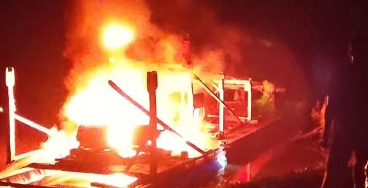 Dalam aksi tersebut, warga membakar sejumlah rakit dompeng sebagai bentuk protes terhadap aktivitas PETI yang dinilai merusak lingkungan serta meresahkan masyarakat sekitar.
